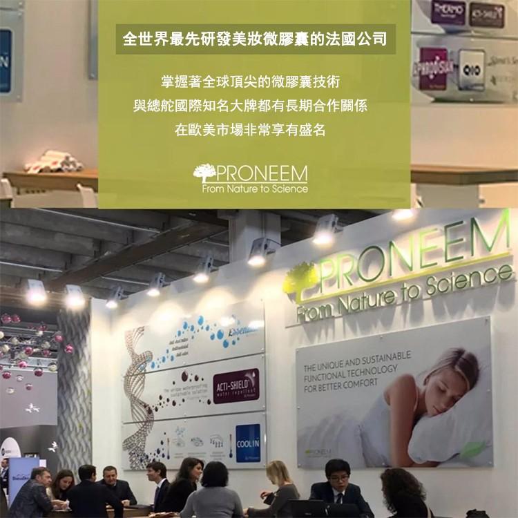 法國Proneem公司是全世界最先研發美妝微膠囊的公司,掌握著最頂尖的核心技術。